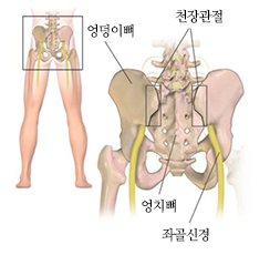 엉덩이뼈와 엉치뼈 사이의 관절 주변에 인대가 손상되어 관절불안정성과